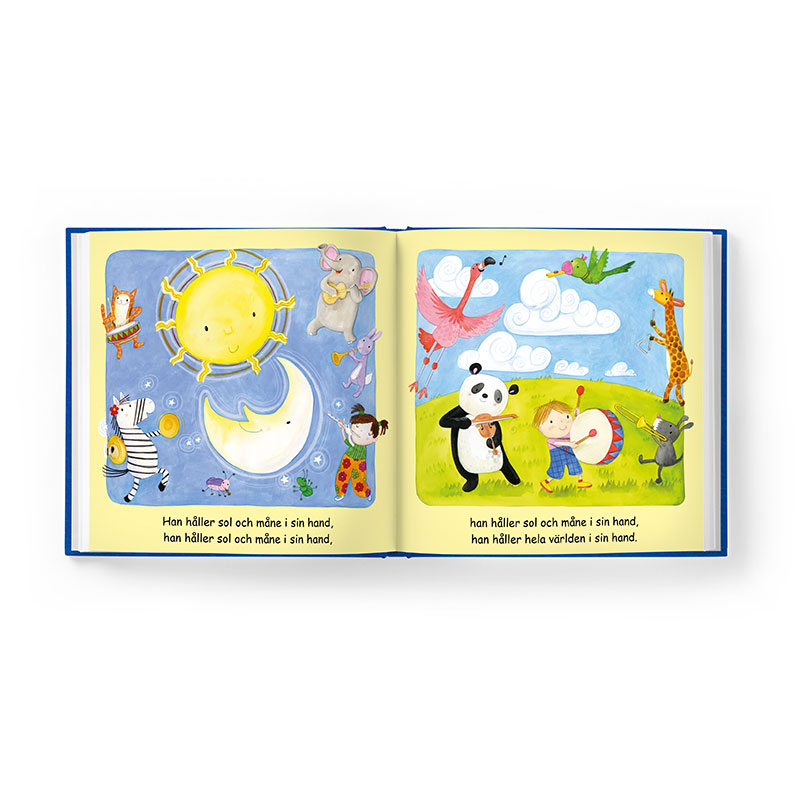 Han håller hela världen i sin hand kombinerar underbara illustrationer med texten i den älskade barnsången.