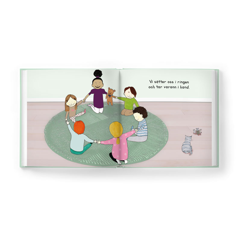 Vi sätter oss i ringen kombinerar underbara illustrationer med texten i den älskade barnsången.