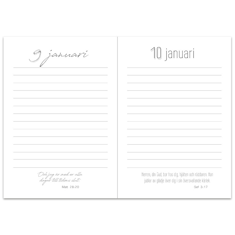 Denna dagbokskalender kan du använda precis som du vill. Kanske blir den din personliga träningsbok, må bra-bok eller andaktsbok. Du kan använda den för minnen, böner eller för planering av din trädgård.